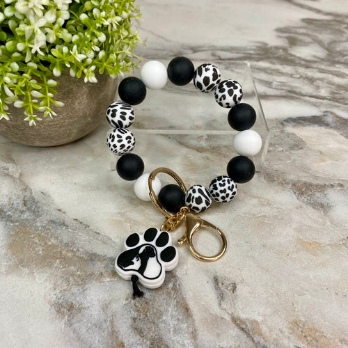 Silicone Bracelet Keychain - Black & White Dog Paw
