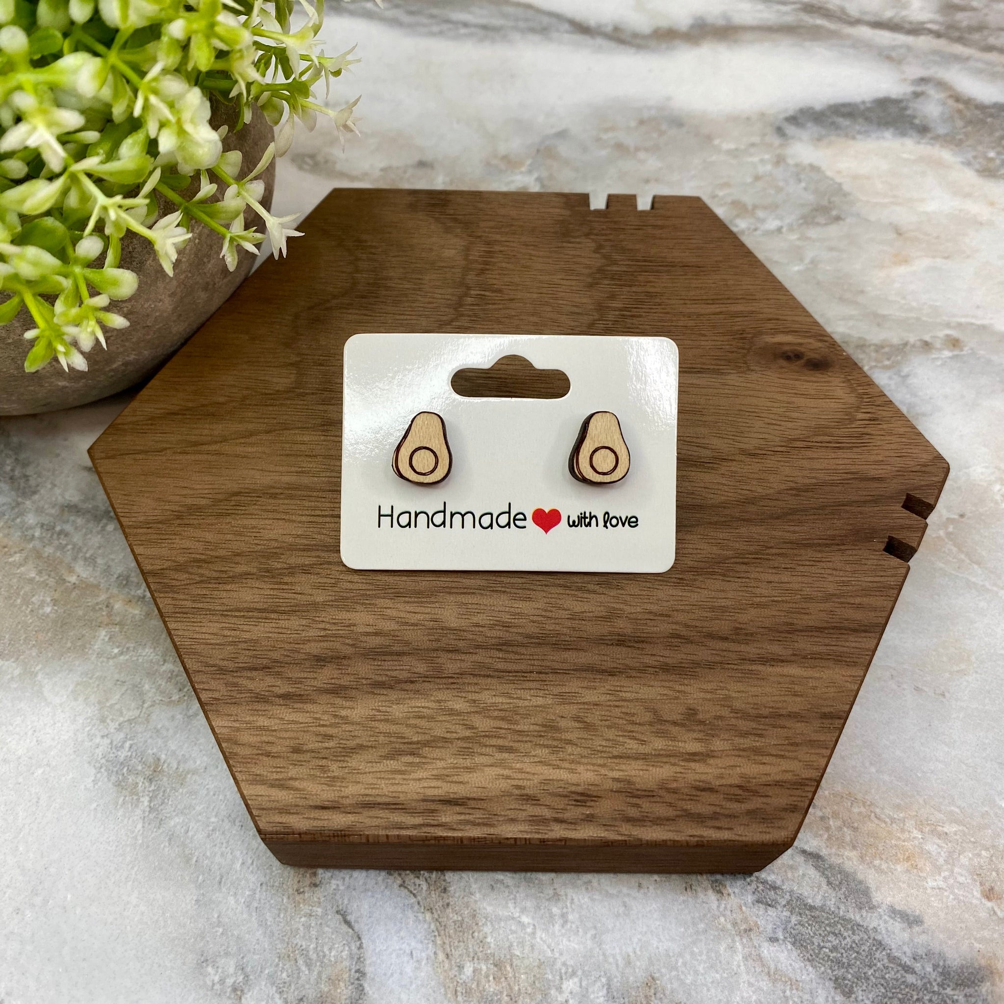Wooden Stud Earrings - Avocado