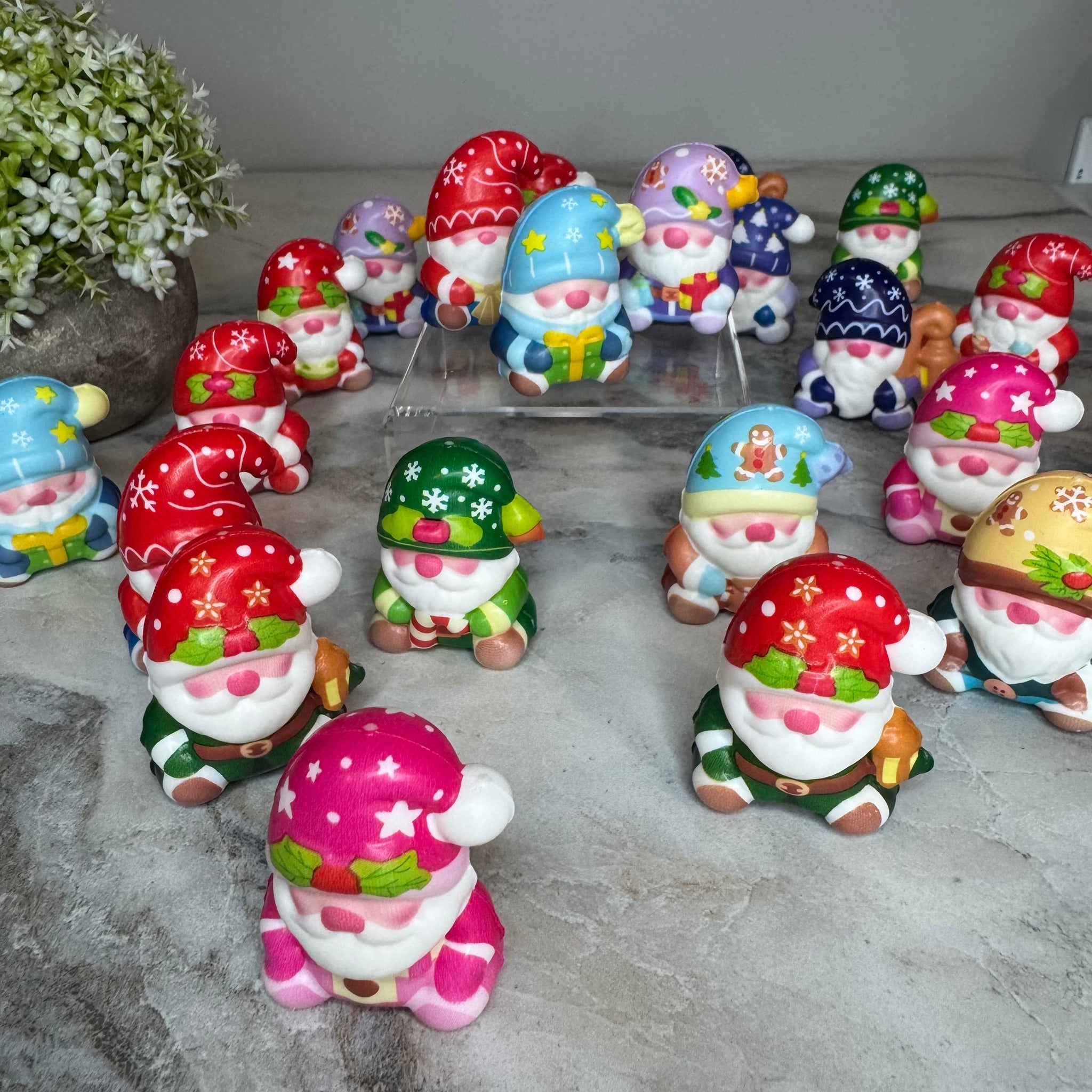 2” foam gnome shape. Easy and fun to squeeze! Christmas design. Sold as a single item chosen from random assortment.